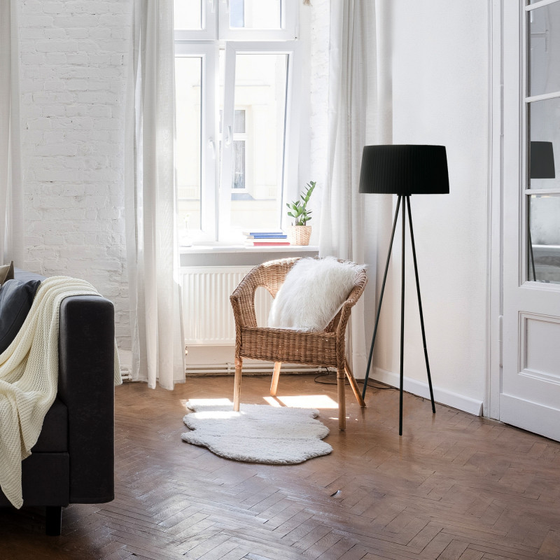 Por aquí os dejamos un ejemplo perfecto de como una lampara de pie en color negro puede ser una opción ideal